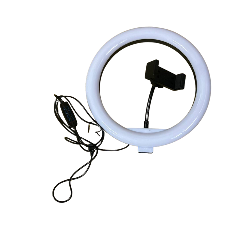 Aro de luz LED profesional de 10 pulgadas (26 cm) con soporte para móvil y trípode ajustable de 120 cm. Perfecto para streaming, maquillaje, videollamadas, TikTok, fotografía y grabación de contenido. Control integrado con varias temperaturas de color (fría, neutra y cálida) y niveles de intensidad.