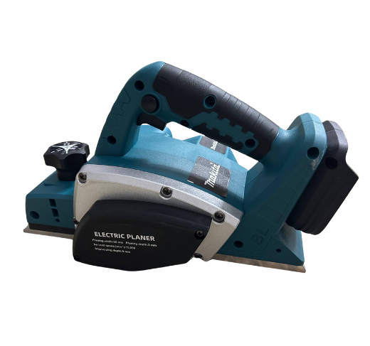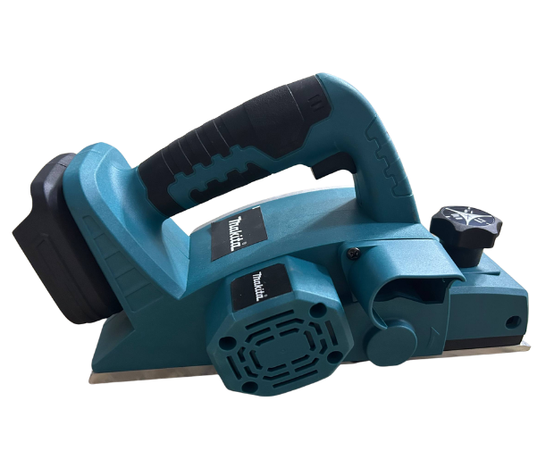 Cepillo eléctrico inalámbrico Makita ideal para trabajos de carpintería y acabado en madera. Diseñado para rebajar, alisar y nivelar superficies con precisión, cuenta con diseño ergonómico que facilita el manejo. Incluye accesorios para ajuste y guía de trabajo.