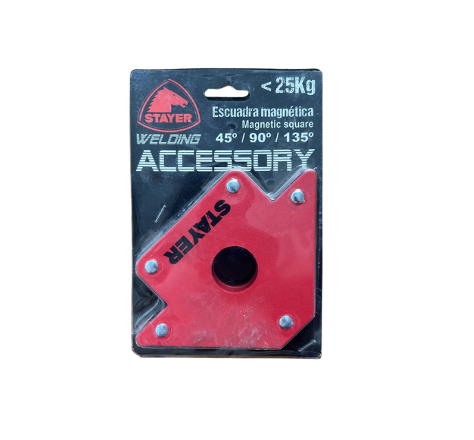 La escuadra magnética STAYER es perfecta para sujetar metales durante soldaduras. Alinea con facilidad en ángulos de 45°, 90° y 135°, soportando hasta 2.5 kg. Ideal para soldadores profesionales o proyectos de herrería.