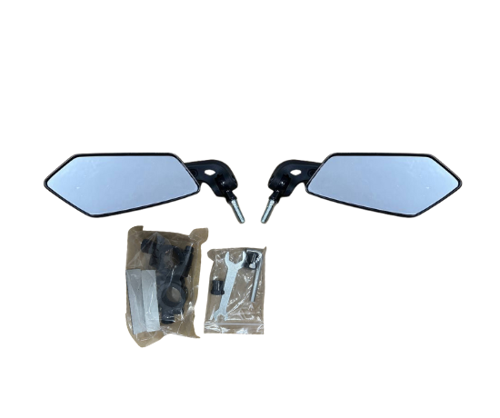 Juego de espejos retrovisores universales para motos o bicis. Diseño aerodinámico con acabado moderno. Fáciles de instalar, ofrecen una visión clara y amplia para mejorar la seguridad al conducir.