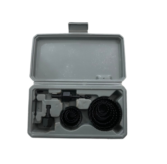 Kit de sierras de corona para taladro ideal para realizar perforaciones circulares en distintos materiales. Incluye varias medidas para adaptarse a diferentes diámetros, presentado en un estuche compacto que facilita su almacenamiento y transporte.