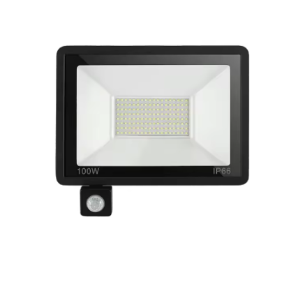 Lámpara LED de 100W con sensor de movimiento y protección IP66 contra agua y polvo. Iluminación potente y eficiente para patios, jardines, entradas o áreas industriales. Detecta movimiento automáticamente para mayor seguridad y ahorro energético.