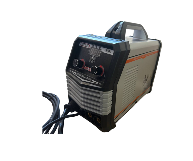 Máquina de soldar inverter que incluye careta y guantes, con tecnología avanzada para soldadura por electrodos (MMA) e hilo continuo (MIG). Ofrece una potencia de 300 amperios con excelente estabilidad de arco y bajo consumo energético. Ideal para trabajos en hierro, acero inoxidable, y otros metales. Compacta, ligera y fácil de transportar, cuenta con ventilación forzada, pantalla digital y controles precisos para una soldadura limpia y eficiente. Perfecta para talleres, mantenimiento y uso doméstico.