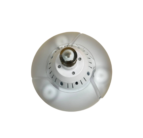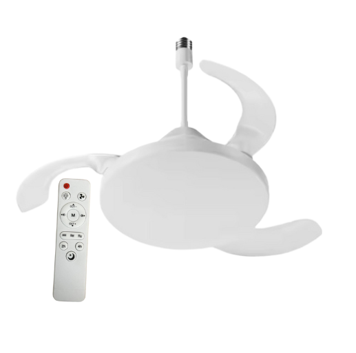 Ventilador de techo moderno con aspas retráctiles que se ocultan cuando no está en uso. Incluye luz LED central y control remoto para encender, apagar y regular la velocidad. Ideal para ahorrar espacio y mantener una estética elegante.