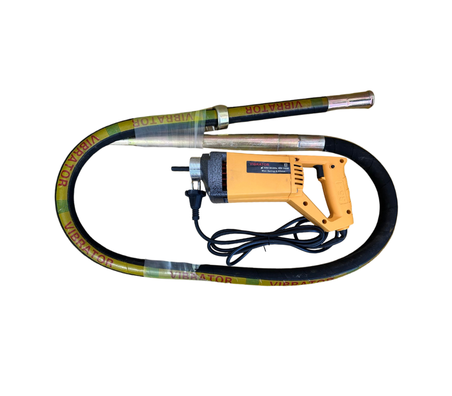 Vibrador de hormigón eficiente, diseñado para compactar concreto eliminando burbujas de aire y vacíos internos. Mejora la resistencia y durabilidad del hormigón. Ideal para trabajos de construcción como columnas, losas, muros o cimientos. Robusto, fácil de manejar y esencial en obras profesionales o domésticas.